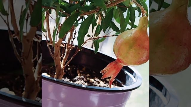 Гранат сорта Нана постепенно окрашивает свой плод