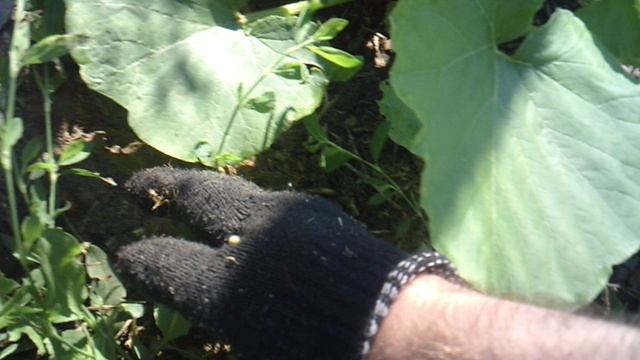 Обзор и прополка лунки с тыквой сорта "Улыбка"