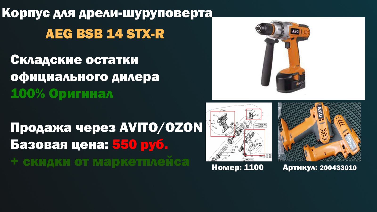 Оригинальный Корпус 200433010 для аккумуляторной дрели-шуруповерта AEG BSB 14 STX-R