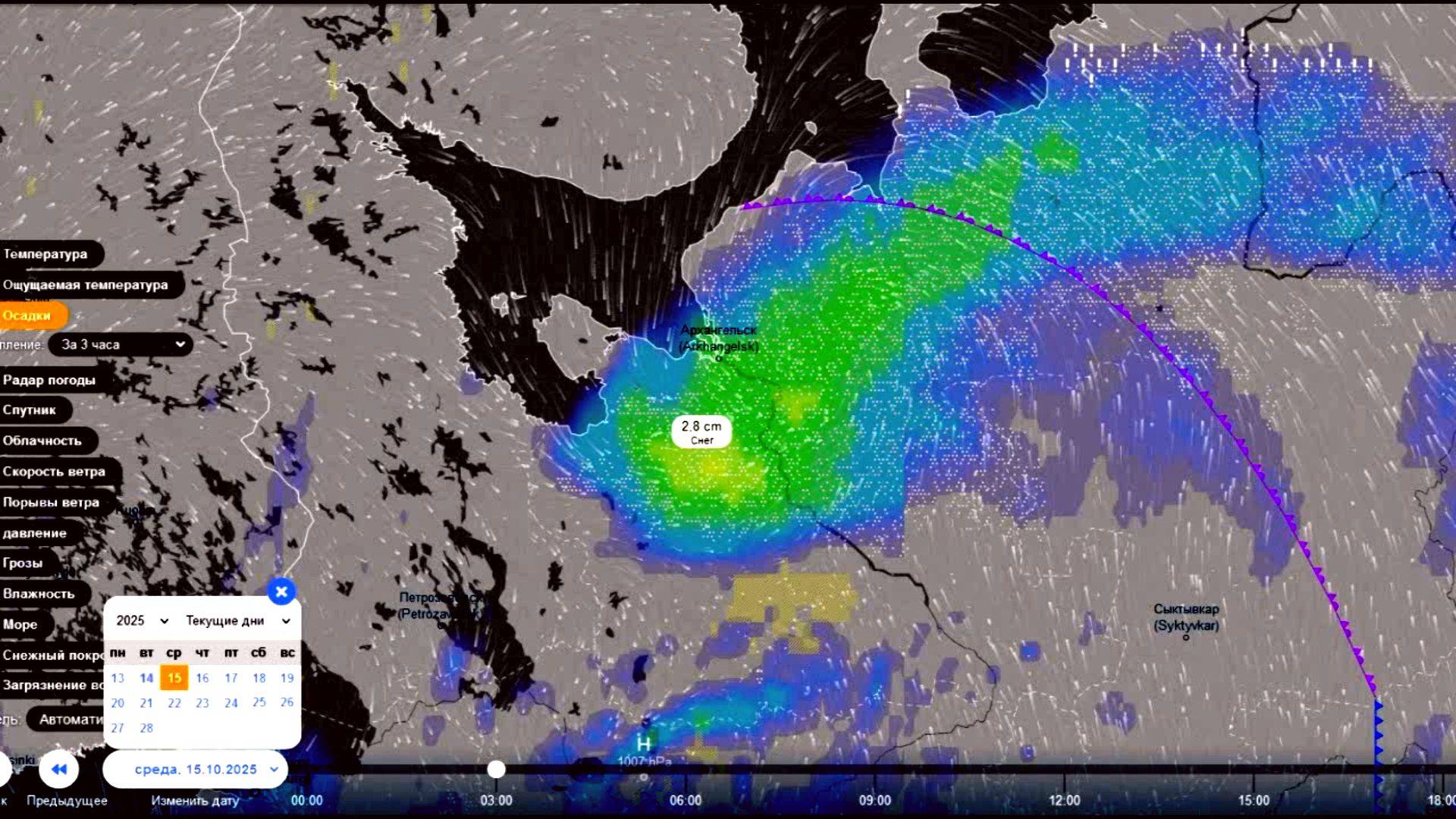 15 октября на севере ЕТР в Архангельской области пройдет сильный снегопад. Прогноз погоды