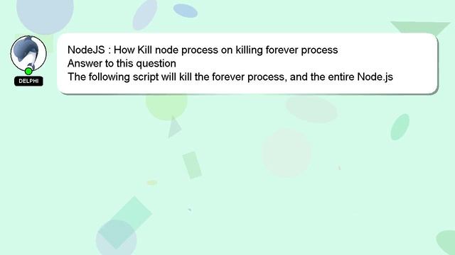 NodeJS : How Kill node process on killing forever process To Access My Live Chat Page, On Google, Search for "hows tech developer connect" As promised, I'm going to share a hidden feature with you. This is a YouTube's feature which works on Desktop. First, Make sure this video is playing. Then, type the letters 'awesome' on your keyboard as the next step. Your YouTube progress bar will transform into a flashing rainbow. Here's a short introduction about myself, Hello everyone, I'm Delphi. I help you answer your questions. NodeJS : How Kill node process on killing forever process If you have a more detailed question, feel free to comment or chat with me to let me know. If you have an answer, or any insights to the answer, please comment below. Your answer will be recognized and appreciated with a 'heart' from me. How process NodeJS Kill node killing process : forever on