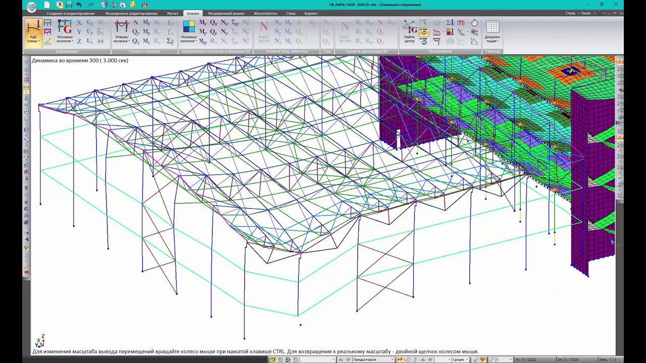 ЛИРА САПР 2020: Прогрессирующее обрушение в динамической постановке.