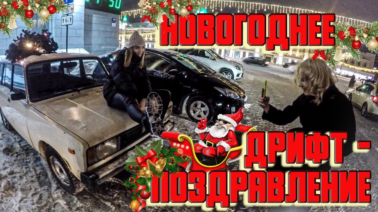 Новогоднее дрифт поздравление по городу. С новым годом 2022! Катаю снегурочек боком на классике.