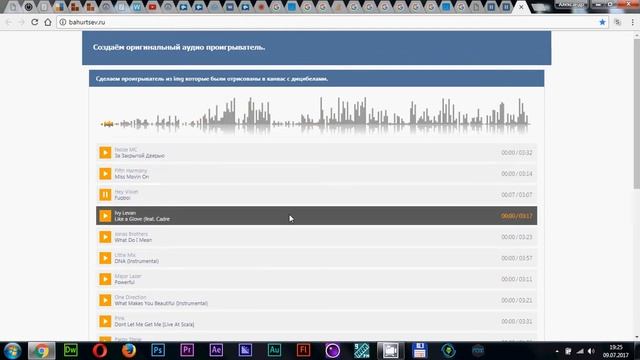 Аудиоплеер и спектр звука на каждый трек