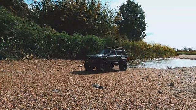 Радиоуправляемый Jeep Cherokee XJ Injora на просёлочной дороге.