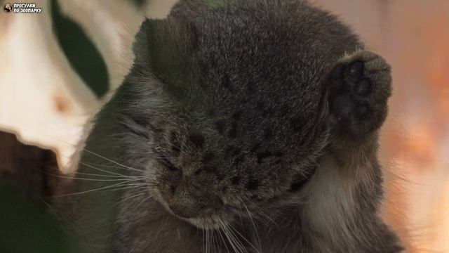 Манул Намика попыталась умыться, но сон ее победил. Ленинградский зоопарк