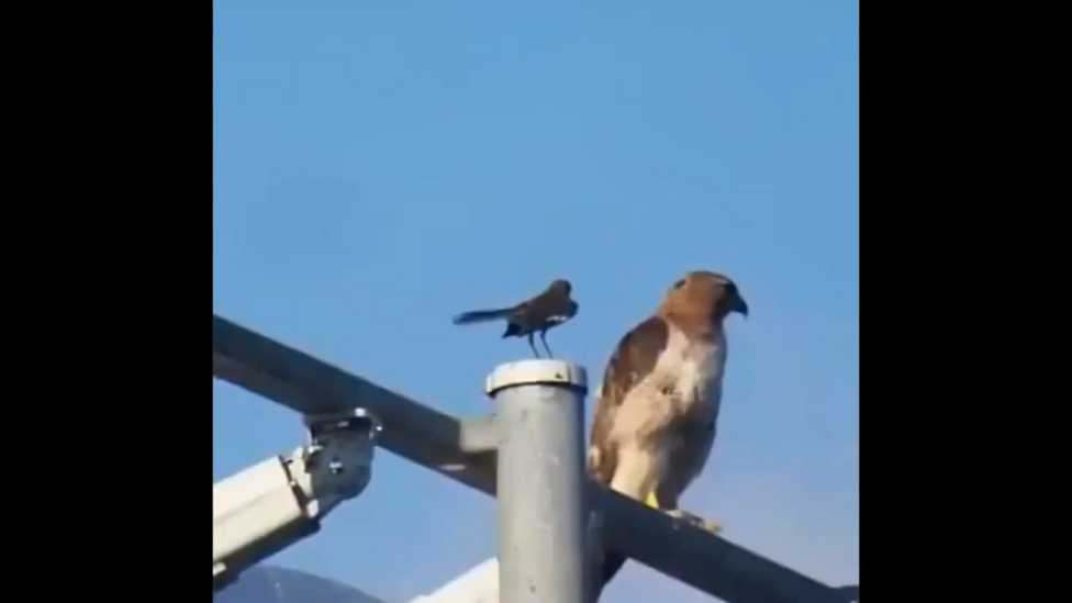 Маленькая птичка пристаёт к орлу, который не обращает на неё внимания. #невозмутимость #птицы #прикол