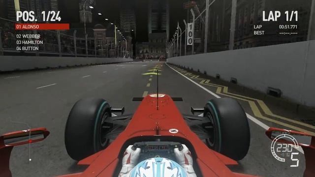 F1 2010 - Fernando Alonso (Ferrari) - Marina Bay (Gameplay HD)