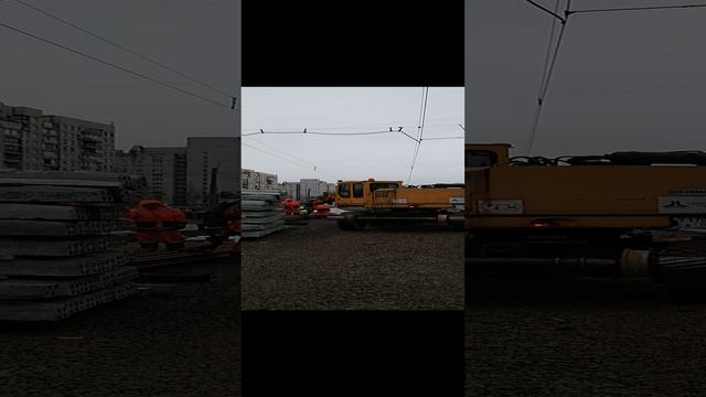 Сейчас это чудо техники при помощи гака перемещает рельсы. mp4