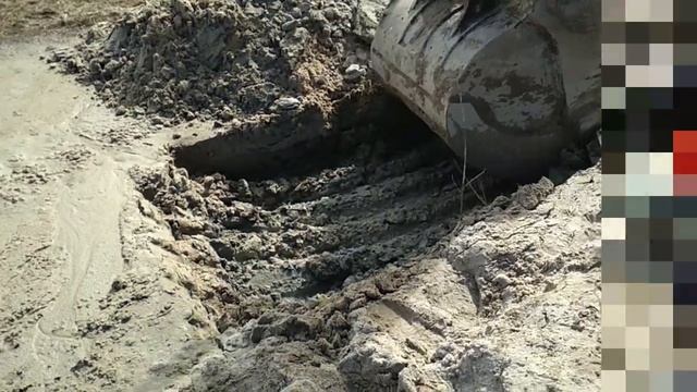 Большой ЭКСКАВАТОР копает яму.