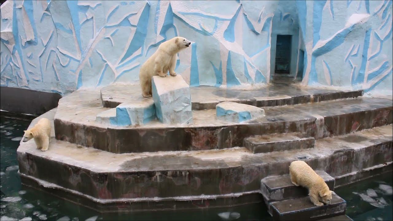 Герда родилась в Москве 20 ноября 2007 года. Её мама Симона, папа Врангель. В Новосибирск переехала 05.08.2008. В 2013 году у Герды и Кая родилась Шилка. В 2015 году она переехала в Японию. В 2015 году родился Ростик. 6 декабря 2018 года он переехал в Китай. В 2018 году родились Норди и Шайна. Сейчас они находятся в нашем зоопарке в закрытой от посетителей хозяйственной зоне. В другие зоопарки их не могут отправить. Сначала была пандемия, сейчас границы закрыты и санкции. Белые медведи Норди и Шайна содержатся в МУП «Новосибирский зоопарк имени Р. А. Шило» с рождения и по настоящее время. Данная пара молодых медведей находится вне экспозиции зоопарка, поэтому посетители не могут их видеть. Передача молодых медведей в другой зоопарк пока не планируется, — ответили на запрос редакции в пресс-центре мэрии Новосибирска. У них есть бассейн, игрушки. Их так же кормят как и раньше. Голодные не бывают. Шайна размером с маму, Норди с папу. Шайна командует Норди. Одиночные животные. Как правило, миролюбивы по отношению друг к другу, но между самцами в брачный период случаются стычки. Взрослые самцы могут нападать на медвежат. Гон с марта по июнь. Продолжительность жизни — максимум 25—30 лет; в неволе рекорд долгожительства — 42 года. Вес очень крупных самцов в некоторых частях ареала 700 и даже 800 кг: есть данные о зверях весом до 1000 кг. Обычно вес меньше. Самки всегда не только меньше, но и значительно легче самцов. Так, самцы в восточной Гренландии в состоянии нормальной упитанности весят 400—450 кг, хорошо упитанные — до 500 кг, самки, даже очень сытые, здесь же редко весят больше 350—380 кг, т. е. их вес составляет около 75% веса самцов. Длина тела на 3-й день после рождения 28—32 см, средний вес — около 755 г (650—840 г). На 26-й день длина тела увеличивается незначительно — до 35—38 см, а вес возрастает до 1125—1275 г. В возрасте 60 дней самцы весят около 7 кг, самки — около 6 кг при длине тела у первых 58—60 см, у вторых 54—58 см. В возрасте 4 месяца медвежата достигают веса 22—23 кг, в 6-месячном возрасте при длине около 110 см — 40—43 кг, в 8-месячном — 58—62 кг. Длина тела в возрасте с 6 до 9 месяцев нарастает по 6—7 см в месяц. Во время зимнего сна рост почти прекращается. В зоопарке медведей кормят утром морской рыбой, хлеб с рыбьим жиром внутри, морковь, яблоки, морская капуста, яйцо дают сырое. Медвежат подкармливают молоком из соски. На ужин мясо (говядина, конина, куры или индейка). Летом и осенью арбузы, дыни, ранетки, кабачки, тыквы, огурцы. Когда показательное кормление летом бросают живую рыбу. Медвежата с медведицей находятся до 2-х лет. 16 декабря 2022 года Герда родила 2-х медвежат. И это две девочки! Имена дали 25 июня. Медвежат зовут Стрелка и Белка. Обзор вольеров белых медведей https://www.youtube.com/watch?v=mAt_b7JD0B4&list=PLGvf0V-rAHxkpGKJaWIZIUxRKgKiqV3xZ&index=17&t=0s