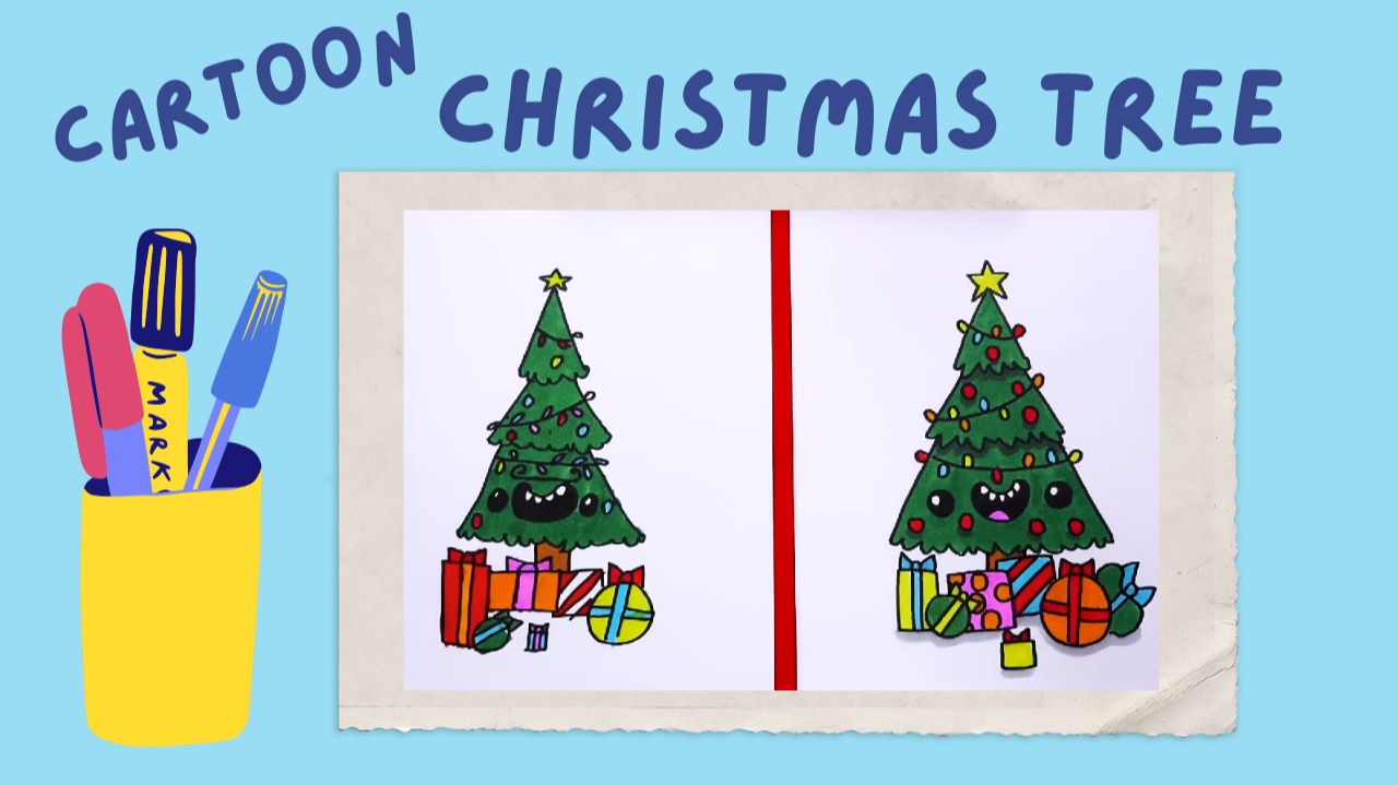 Let's draw a cartoon Christmas tree together! Get a paper, pencil or marker and colored pencils or markers and follow the instructions. #Christmas #drawing #english