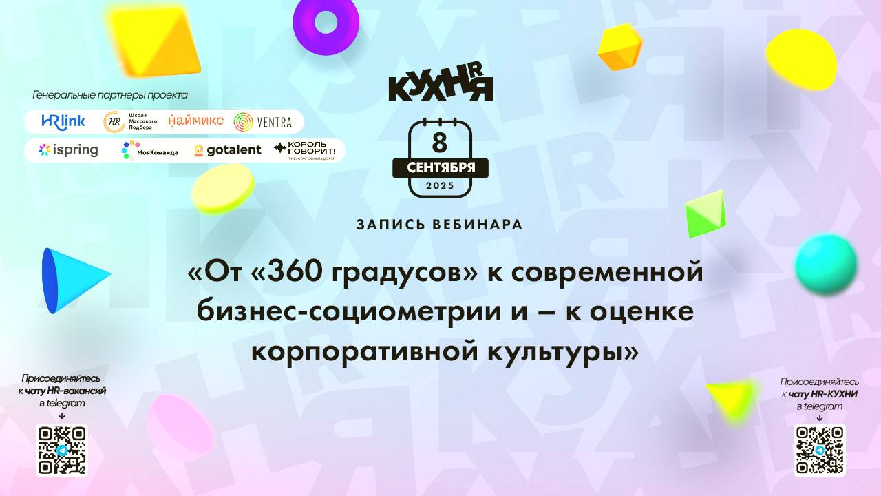 Присоединяйтесь к чатам и каналам HR-КУХНИ в телеграм: - Основной чат HR-КУХНИ в телеграм - https://t.me/+tYgAH0PgPQVkOWIy - Канал HR вакансий в телеграм - https://t.me/+CMNAN2u1hjo3M2Ri - Канал HR-EVENTS в телеграм - https://t.me/hr_kitchen - Канал HR JOURNAL в телеграм - https://t.me/hrkitchenjournal Полезные ссылки: - Каталог HR решений - https://hrkitchen.ru/exhibition - График конференций, бесплатных вебинаров, а также бесплатные курсы – https://hrkitchen.ru/ - Стать спикером HR-КУХНИ - https://hrkitchen.ru/speakers - Подписаться на полезную e-mail рассылку от HR-КУХНИ (новости, гайды, чек-листы, подарки от партнеров) - https://hrkitchen.ru/subscribe