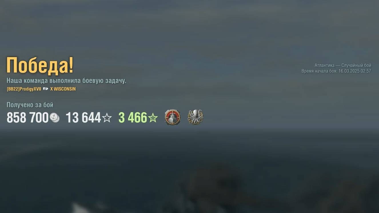 Линкор Wisconsin. Игрок: ProdigyXVII (NA). Карта: Атлантика - Случайный бой. Урон: 173к. Wisconsin - Линкор США 10 уровня.