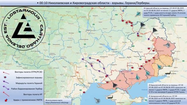‼️🇷🇺Анимированная схема ударов по территории уСраины 7-8 июня 2025 года😎🤙🇷🇺🇷🇺🇷🇺
