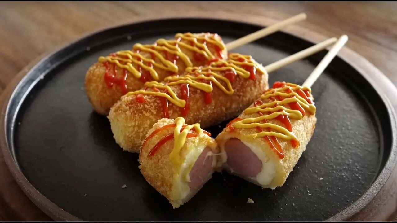 😋 Вкусные сосиски в тесте Ингредиенты: Вода - 150мл. Сахар - 0,5 ст.л. Дрожжи - 0,5 ст.л. Яйцо - 1 шт Соль - 1/4ч.л. Мука - 200г. Панировочные сухари Растительное масло для жарки Сосиски, сыр 🔥Приготовление: Вливаем в миску воду, добавляем дрожжи, сахар и муку. Перемешиваем и убираем в теплое место на 10 минут. Сосиски разрезаем пополам, а сыр нарезаем на брусочки. Нанизываем на шпажку. Далее в тесто добавляем яйцо, соль и муку, перемешиваем, накрываем и убираем в теплое место на 40 минут. Обматываем сосиски как на видео, обваливаем в панировочных сухарях и жарим на капле растительного масла с двух сторон по 3-4 минуты. Приятного аппетита! #закуски