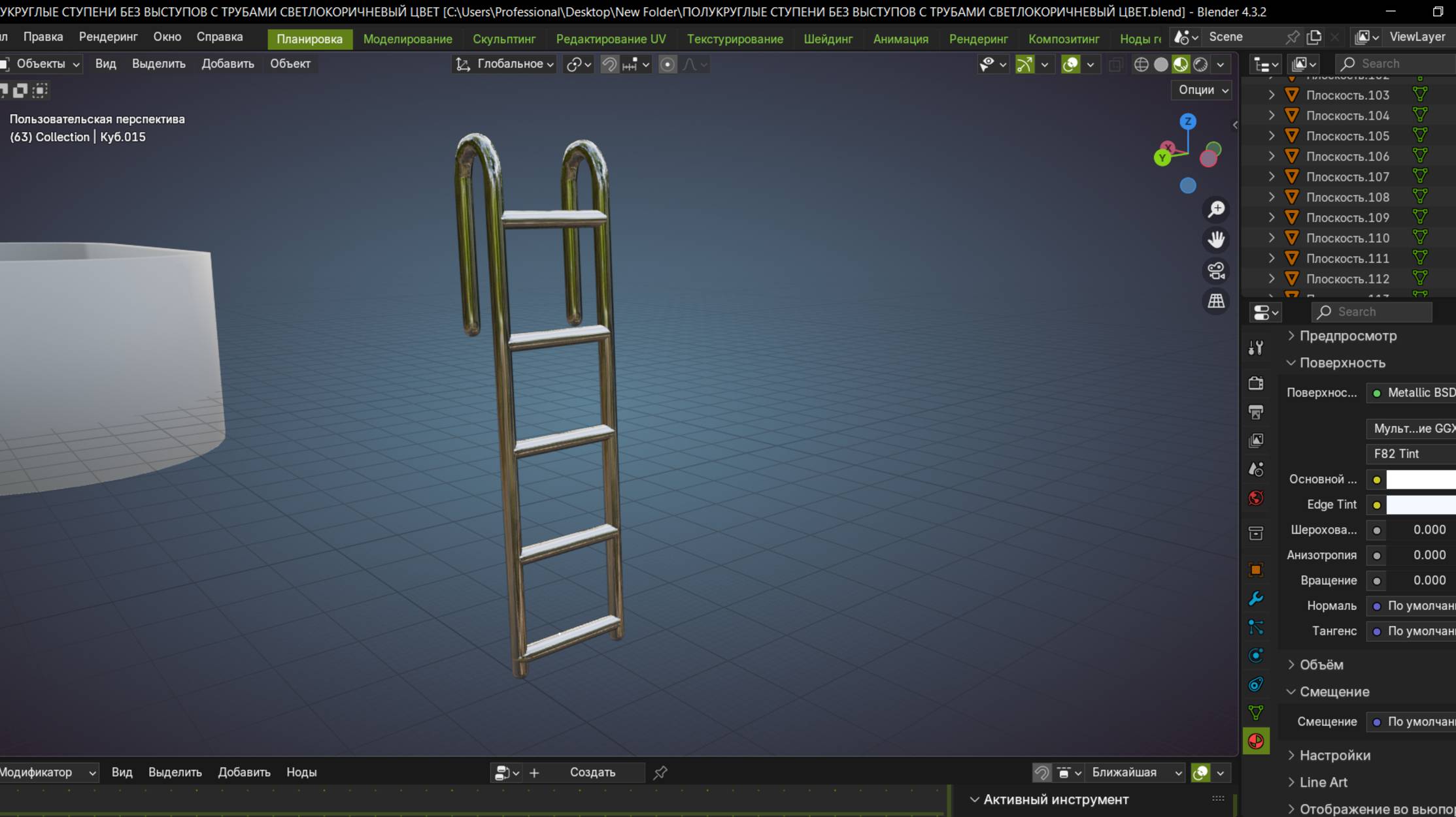 Хромированная лестница для бассейна в Blender ,получилась на удивление быстро, осмотр красотки.