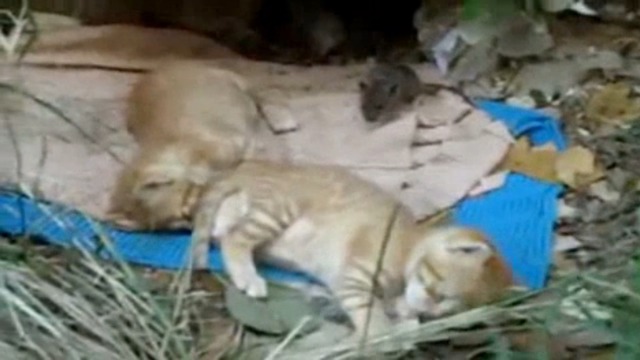 Котятки играют с мышкой