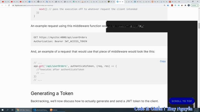 505 - Node JS - Express JS - JWT - Json Web Token. JWT là gì ? Cách dùng thế nào ? Code: https://github.com/codelaghien/NodeJS_ExpressJS 1. New folder 2. Vào DOS Prompt (lệnh cmd) c:\..\New folder: git clone https://github.com/codelaghien/NodeJS_ExpressJS.git 3. Vào thư mục: NodeJS_ExpressJS c:\..\New folder: cd NodeJS_ExpressJS 4. Chạy chương trình c:\..\New folder\NodeJS_ExpressJS: git checkout 505 5. Chạy lệnh c:\..\New folder\NodeJS_ExpressJS: npm install 6. Chạy chương trình c:\..\New folder\NodeJS_ExpressJS: node app.js Background Music: Communicator Reed Mathis