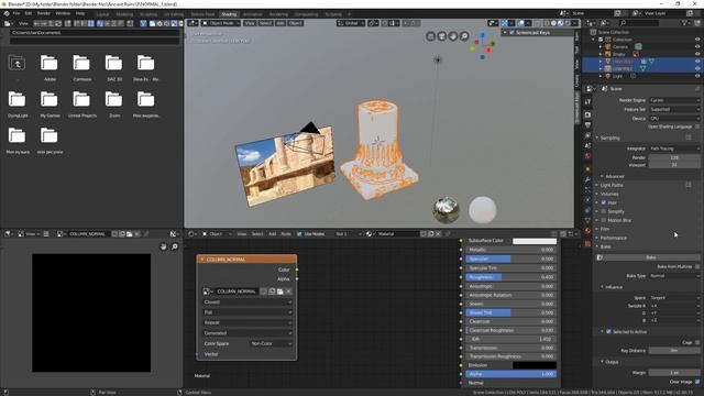 Blender 2.8 / 2.80 Modelling a low-poly column / BAKING A NORMAL MAP CORRECTLY / NO SEAMS/GLITCHES