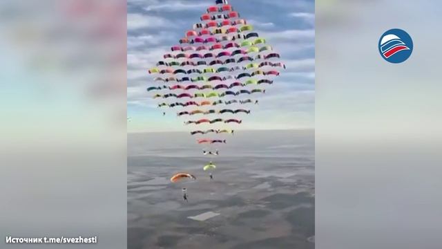 Завораживающее зрелище: 104 парашютиста из разных стран побили мировой рекорд по синхронным прыжкам