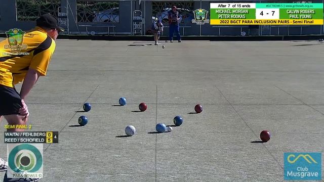 Welcome to LIVEONTHEGREEN at Club Musgrave for Day 2 of the BGCT Para Inclusion Pairs. Second stream today is the Semi Final... Michael Morgan & Peter Rookas (s) vs Paul Young & Calvin Rogers (s). If you are in the area, drop down to the Club to watch what should be some great games..