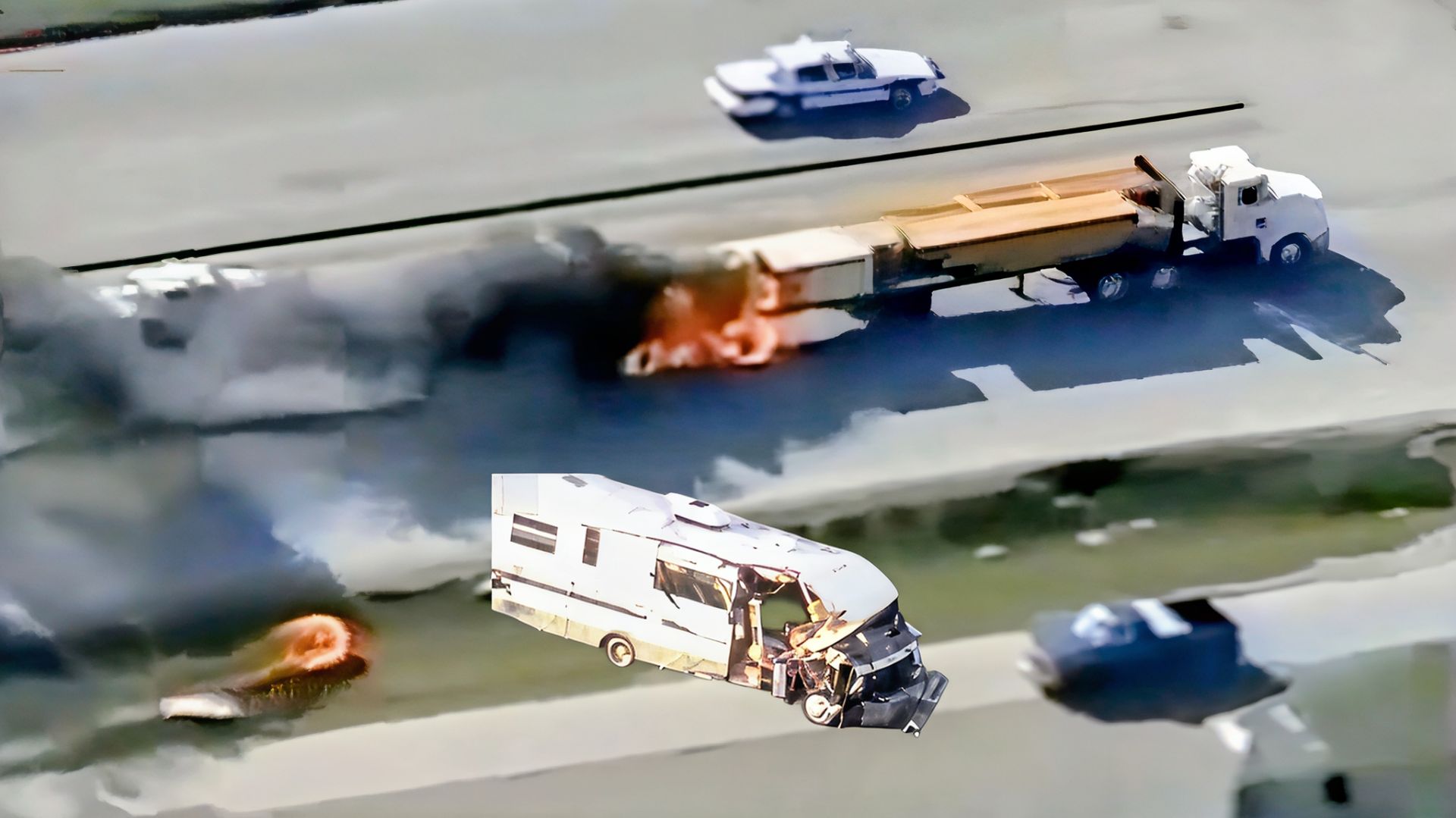 Крутая погоня полиции США за Домам на колёсах и Грузовиком - со стрельбой и тараном.