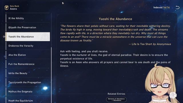 British vtuber reads some stuff from the Honkai Star Rail menus because it's interesting Join the Patreon: https://www.patreon.com/BrionyRoseSmith If you would like to support you can gift me a kofi: https://ko-fi.com/brionyrosesmith Follow me for news on my books, reviews and more: Twitter: https://twitter.com/BRSBooks TikTok: https://www.tiktok.com/@brionyrosesmith Discord: https://discord.gg/NUn37q6p Need some writing done? Be if fiction, a blog, a script or more you can contact me on Fiverr for writing services: https://www.fiverr.com/brionyrsmith?up_rollout=true If your looking for more reading, buy my books: https://amzn.to/4319X3y Model Artist: https://twitter.com/AbrahelAiko Rigger: https://www.fiverr.com/rapiansyah_agan