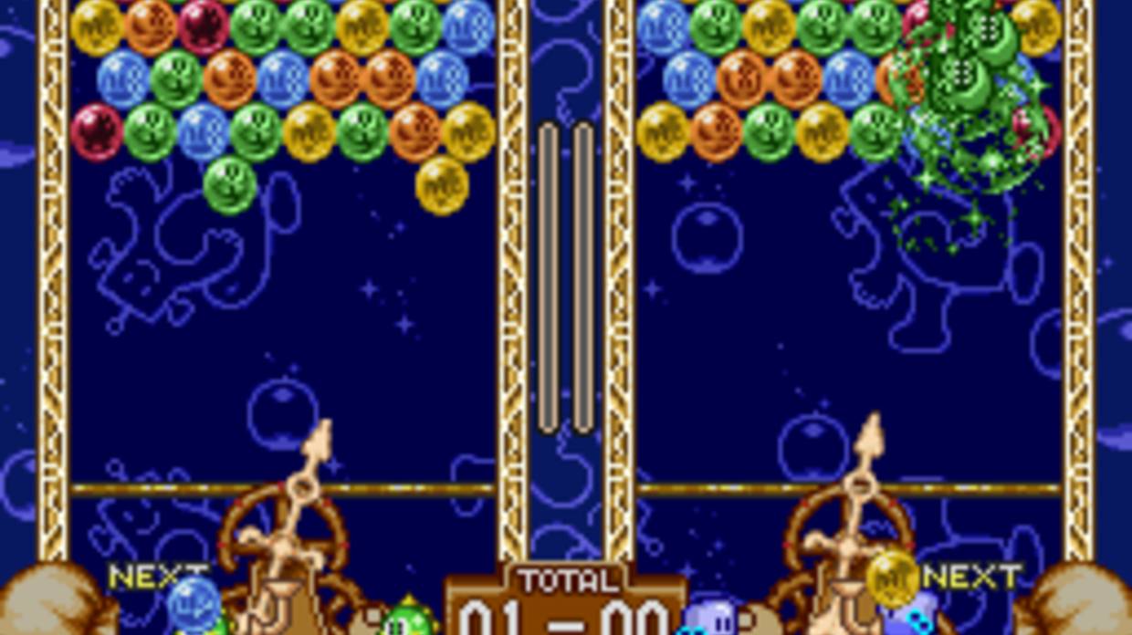 Домашняя версия Bust-A-Move не является прямой адаптацией аркадной игры. В ней значительно увеличено количество уровней, добавлены новые возможности геймплея и новые режимы. Общая концепция осталась прежней: игрок управляет катапультой в нижней части экрана, которая стреляет пузырями случайных цветов. Когда три или более пузырька одного цвета соприкасаются с игровым полем, они удаляются, а все пузырьки, которые не прикреплены к потолку, боковой стенке или другому пузырьку, падают. Потолок периодически опускается, выталкивая пузырьки вниз. Игра считается проигранной, если хоть один пузырек коснется дна. В одиночном режиме цель состоит в том, чтобы убрать заданные пузырьки. Игра состоит из 100 уровней, что более чем в три раза превышает количество уровней в аркадной игре. Некоторые аркадные уровни используются повторно, но большинство из них совершенно новые. Также новыми являются элементы геймплея в виде специальных пузырьков: взрывающиеся пузырьки при попадании уничтожают пузырьки в небольшом радиусе вокруг себя. При попадании пузырьки-молнии перемещаются в сторону, очищая горизонтальную линию. Пузырьки с водой лопаются, а нисходящий поток окрашивает все пузырьки, к которым прикасается. Еще один новый элемент - битва с боссом на последнем уровне. Режим для двух игроков из аркадной версии также появляется вновь, но при необходимости добавляет серию из десяти компьютерных противников с различными стратегиями игры. В режиме для двух игроков цель состоит в том, чтобы заставить другого игрока потерпеть неудачу. Вместо опускающегося потолка сверху добавляются новые пузыри. При удалении более трех необходимых пузырьков за раз пузырьки попадают на поле соперника. Последний режим - режим испытания: это бесконечный режим, в котором новые пузырьки постоянно добавляются сверху. Игра ведется на максимальное количество очков: учитываются как количество набранных очков, так и количество лопнувших пузырьков. #supernintendo #snes #nintendo #longplay #прохождение #walkthrough #playthrough #ретрогейминг #retrogaming #retro #retrogames #ретроигры #ретроконсоли