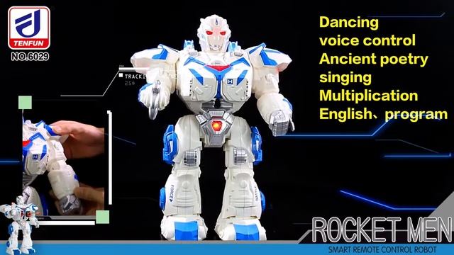 ROCKET MAN - Удивительный и уникальный робот! • Возможность программирования команд • Пульт ДУ • Управление звуками (хлопки) • Управление жестами (датчик на груди) • Встроенный аккумулятор • Запуск ракет • Звуковые и световые эффекты • Высота 43 см Если не знаете, чем порадовать ребенка, подарите ему робота на дистанционном управлении. Такой робот - это отличный подарок для мальчиков. У Rocket Man внушительная внешность и неординарные способности. С такой крутой игрушкой ребенок сможет придумать множество увлекательных сюжетов. У робота подвижные руки и ноги, корпус выполнен из прочного пластика. Играя с роботом, ребенок раскроет свой творческий потенциал и воображение.