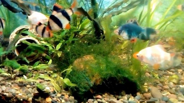 Барбусятник. Временно проживают два Снежных принца, Акара и Цихлазома чернополосая.