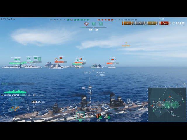 Линкор Князь Суворов.Морской бой-13.Игра World Of Warships