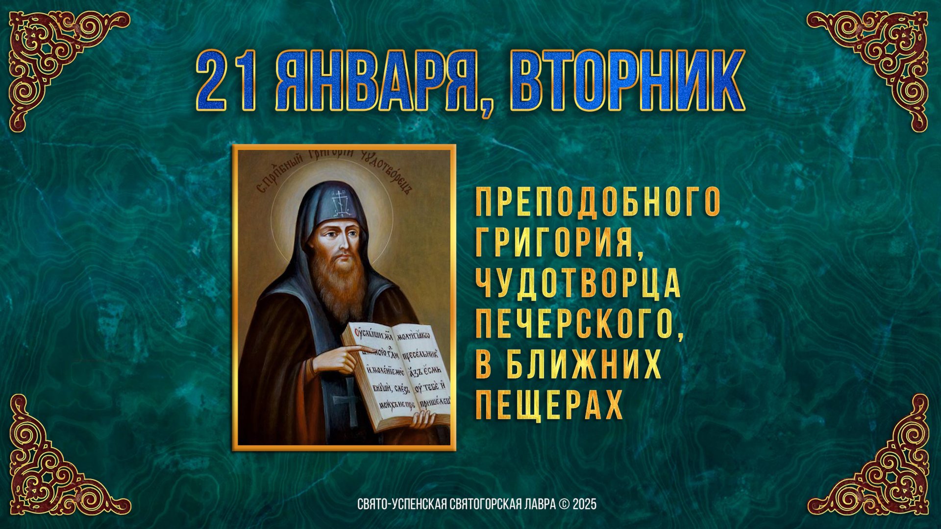 Прп Григория, чудотворца Печерского, в Ближних пещерах. 21 января 2025 г. Мультимедийный календарь