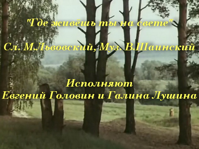 "Где живёшь ты на свете" - Слова Михаил Львовский, музыка Владимир Шаинский. Исполняют Евгений Головин и Галина Лушина. Из фильма "Завтрак на траве". Удачи!