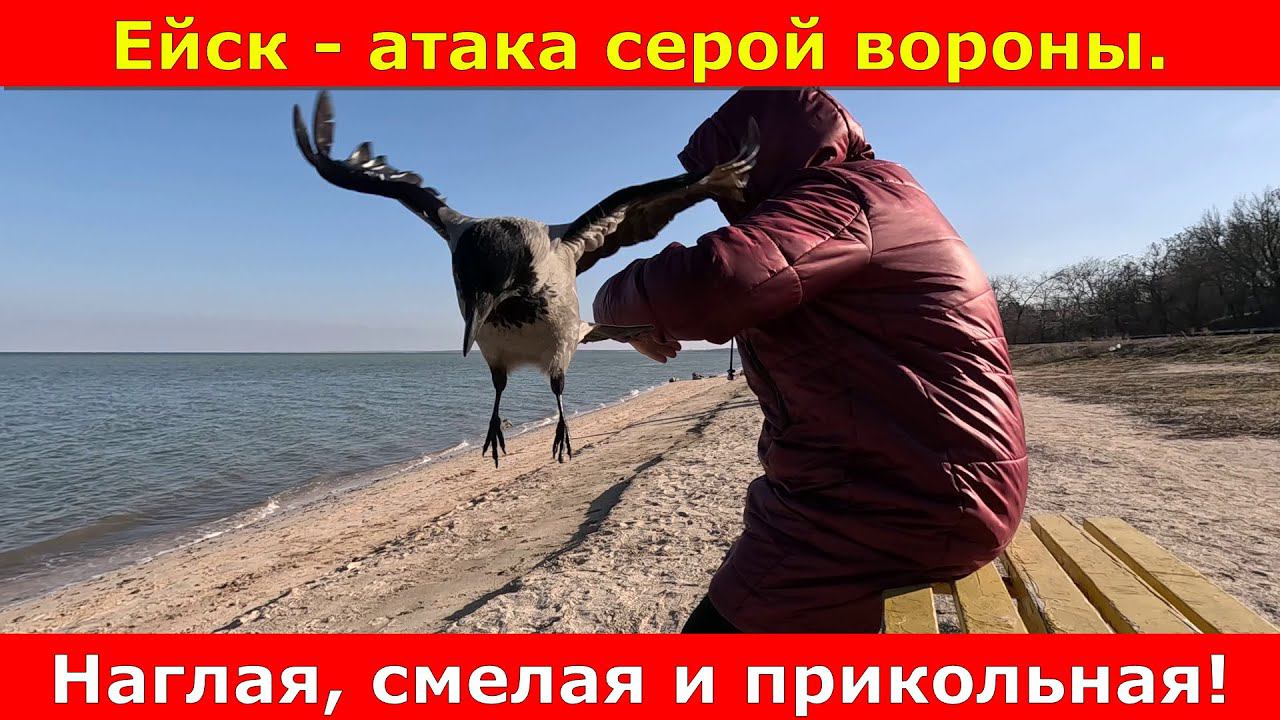 Ейск - нападение серой вороны. Наглая, смелая и прикольная.