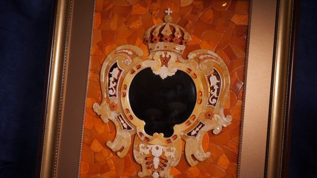 Картуш с зеркалом в стиле янтарной комнаты. Предметы искусства из янтаря. Baltamber