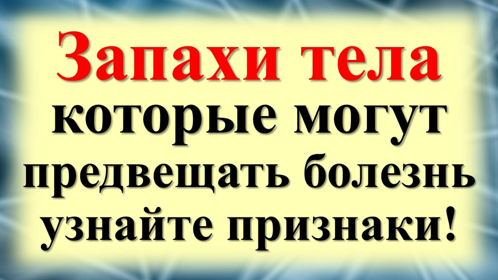 В этом видео вы узнаете, как запахи вашего тела могут предупреждать о скрытых заболеваниях. Некоторые запахи могут быть ранними признаками проблем с дыхательной системой, почками или печенью. Мы расскажем, на какие изменения в запахах стоит обратить внимание и как правильно расшифровать эти сигналы организма. Узнайте, какие запахи могут быть симптомами серьёзных болезней и как вовремя обратиться за помощью. Не игнорируйте подсказки вашего тела – они могут спасти вам жизнь! ✎﹏﹏﹏﹏﹏﹏﹏﹏﹏﹏﹏﹏﹏﹏ ❤️Благодарность можно выразить: карта Мир: 2204120116234762 Яндекс счёт (Юмани) 4100112200058180 Донат: https://boosty.to/ezforyou/donate Пусть вернётся ВАМ ДОБРО здоровьем, благополучием, щедрыми помогающими руками в нужный час. Благодарим Вас за поддержку! ✎﹏﹏﹏﹏﹏﹏﹏﹏﹏﹏﹏﹏﹏﹏ (c)&(p) Aramat Group (ИИ196) © Aramat Group, 2024