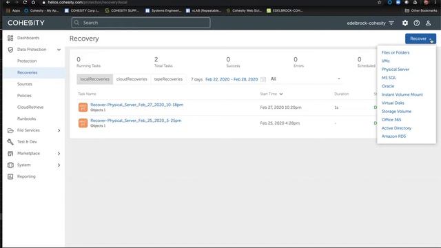 Cohesity PHY Agent VMW VM File Recovery from iSCSI LUN