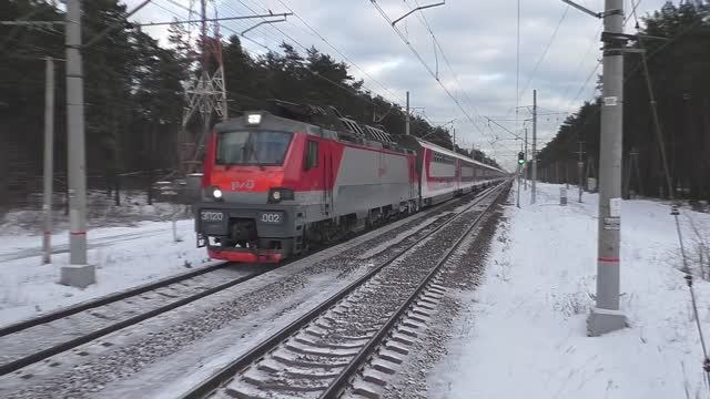 Видео снято 03.01.2024 г. в 14:11 видеокамерой Panasonic HC-V760 на о.п. Заря, перегон ст. Купавна - ст. Железнодорожная, участок о.п. Заря - о.п. Чёрное. Московская область, Горьковское направление Московской ж/д, 29 км до Курского вокзала. Магистральный двухсистемный скоростной пассажирский электровоз ЭП20-002 "Олимп" (приписан к депо ТЧЭ-6 Москва-Сортировочная-Рязанская) со скорым поездом №063Й/064Й Самара - Санкт-Петербург следует по 1-му гл. пути. 🚅🚅🚅 Электровоз ЭП20-002 - Электровоз Пассажирский, тип-20, 002 - порядковый номер. Дорога приписки: Московская железная дорога Депо: ТЧЭ-6 Москва-Сортировочная-Рязанская Серия: ЭП20 "Олимп" Завод-изготовитель: ООО "ПК "Новочеркасский электровозостроительный завод", Россия, г. Новочеркасск, Ростовская область Сетевой №: 11899531 Построен: 02.2012 г Категория: Магистральные электровозы Текущее состояние: Эксплуатируется Эксплуатация: С завода поступил в депо ТЧЭ-6 Москва-Сортировочная-Рязанская Московская ж. д. 03.2016 г. — передан в депо ТЧЭ-33 Ожерелье-Сортировочное Московская ж. д. 11.2018 г. — передан в депо ТЧЭ-6 Москва-Сортировочная-Рязанская Московская ж. д. Ремонты: 11.2018 г. — СР Новочеркасский ЭВЗ