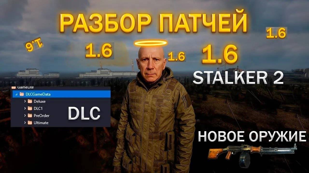 Секреты и баги нового патча 1.6 уже тут! Что добавят и что поменяется? 00:00 - Патч 1.6 и новый контент • Патч может добавить новый контент, оружие и снаряжение для разнообразного геймплея. • Улучшена дальность прорисовки, добавлен бинокль. • Прибор ночного видения ПНВ теперь имеет описание и зависит от поколения устройства. 00:29 - Улучшения ПНВ и новое оружие • ПНВ может быть улучшен в костюмах и шлемах. • Новые прицелы, например, тепловизионный, который можно найти на базе Варта на химзаводе. • Показаны новые виды оружия: Берета и Марта. • Убран ручной пулемёт Дегтярёва РПД. 01:07 - Новый детектор «Око» • Детектор «Око» можно найти на полке за спиной Хомяка в «Малой зоне». • Описание детектора: мощный ультрасовременный детектор, разработанный в НИИЧАЭС. • Доктор Дарлин — единственный, кто понимает его принципы работы. • Детектор не берётся в руку и не имеет иконки в инвентаре, возможно, появится в сюжетном DLC. 01:32 - Новые виды мутантов и квесты • Новый вид кровососа, который не используется в игре, но существует на концептах. • Возможные косметические изменения мутантов в зависимости от местности обитания. • Новые квесты, включая цепочку с Гонтой. 02:30 - Технические улучшения и оптимизация • Работа над производительностью, стабилизацией и оптимизацией. • Исправление багов: летающие трупы, проблемы с NPC во время выброса в офлайне. • Вторая фаза развития инструментов для модов, включая редактирование звуков в SDK. 03:10 - Упоминание DLC • Разработчики убрали все упоминания DLC 0.1 после крупной утечки. • Обсуждение DLC 0.1 будет в следующем ролике.