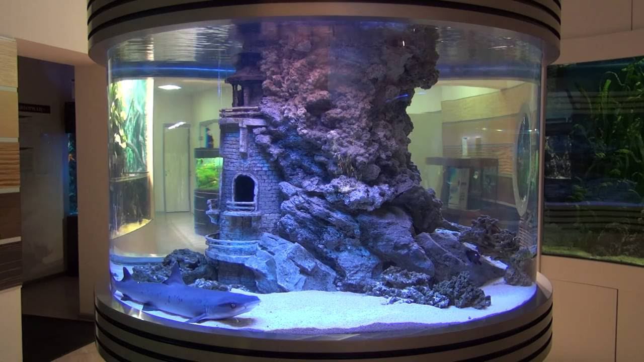 Белопёрая акула в цилиндрическом аквариуме салона "Аква Лого"