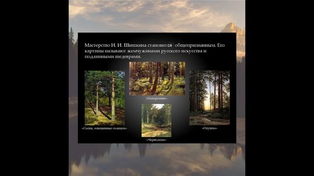 Иван Шишкин – выдающийся художник-пейзажист, рисовальщик, живописец, гравер-аквафортист. Представлял дюссельдорфскую художественную школу, автор многочисленных пейзажей. 25 января исполняется 190 лет со дня рождения русского художника Ивана Ивановича Шишкина. Родился 25 января 1832 года в г.Елабуга Известные картины: «Сосна на Валааме»(1858), «Вид в окрестностях Дюссельдорфа» (1865), «Рубка леса» (1867), «Рожь» (1878), «Среди долины Ровныя», (1883), «Лесные дали» (1884), «Сосны, освещённые солнцем» (1886), «Дубовая роща» (1887), «Утро в сосновом лесу» (1889), «Корабельная роща» (1898). Живопись была для Шишкина всем, самой жизнью, и даже свой смертный час художник встретил за мольбертом, с неизменной кистью, зажатой в руке. С годами выработался «фирменный» стиль Шишкина, он экспериментировал с использованием разных кистей, накладывал необычные мазки, стремился передать мельчайшие, едва уловимые оттенки. На полотнах художника-пейзажиста Ивана Шишкина оживает первозданный лес, с его величественной красотой, расплескались бескрайние просторы полей, веет холодом сурового края. Всматриваясь в его полотна, понимаешь, настолько они реалистичны, так и хочется подставить лицо дуновению легкого ветерка или посмотреть, под лапами какого животного трещат сучья. Шишкин много путешествовал по России, воспевая величественную красоту ее природы в своих картинах, которые сегодня известны каждому. Он искал вдохновение в пейзажах Троице-Сергиевой Лавры, бродил по просторам Сестрорецка и Сокольников, любил выезжать в лес на Лосиный остров, часто посещал Беловежскую пущу и город своего детства – Елабугу. Свои шедевры Шишкин иногда создавал не сам. Всем известное полотно «Утро в сосновом лесу» родилось при помощи анималиста и друга Ивана – Константина Савицкого. Благодаря ему, на картине появились медвежата, резвые, живые, очень реалистичные. Шишкин оставил после себя наследие, которому суждено обрести бессмертие на века. Славу и известность он получил еще при жизни, о нем говорили – «певец русского леса», преклоняясь перед его мастерством и любви к родной природе. Посвящаем вашему вниманию видеоролик о его творчестве #хангаласскийулус #библиотекановогопоколения #хангаласскаямцбс #модельнаябиблиотека #русскиехудожники