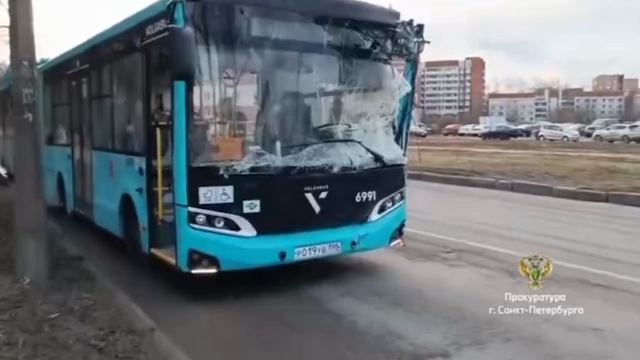 Два пассажирских автобуса столкнулись на повороте в Пушкине, Ленинградской области