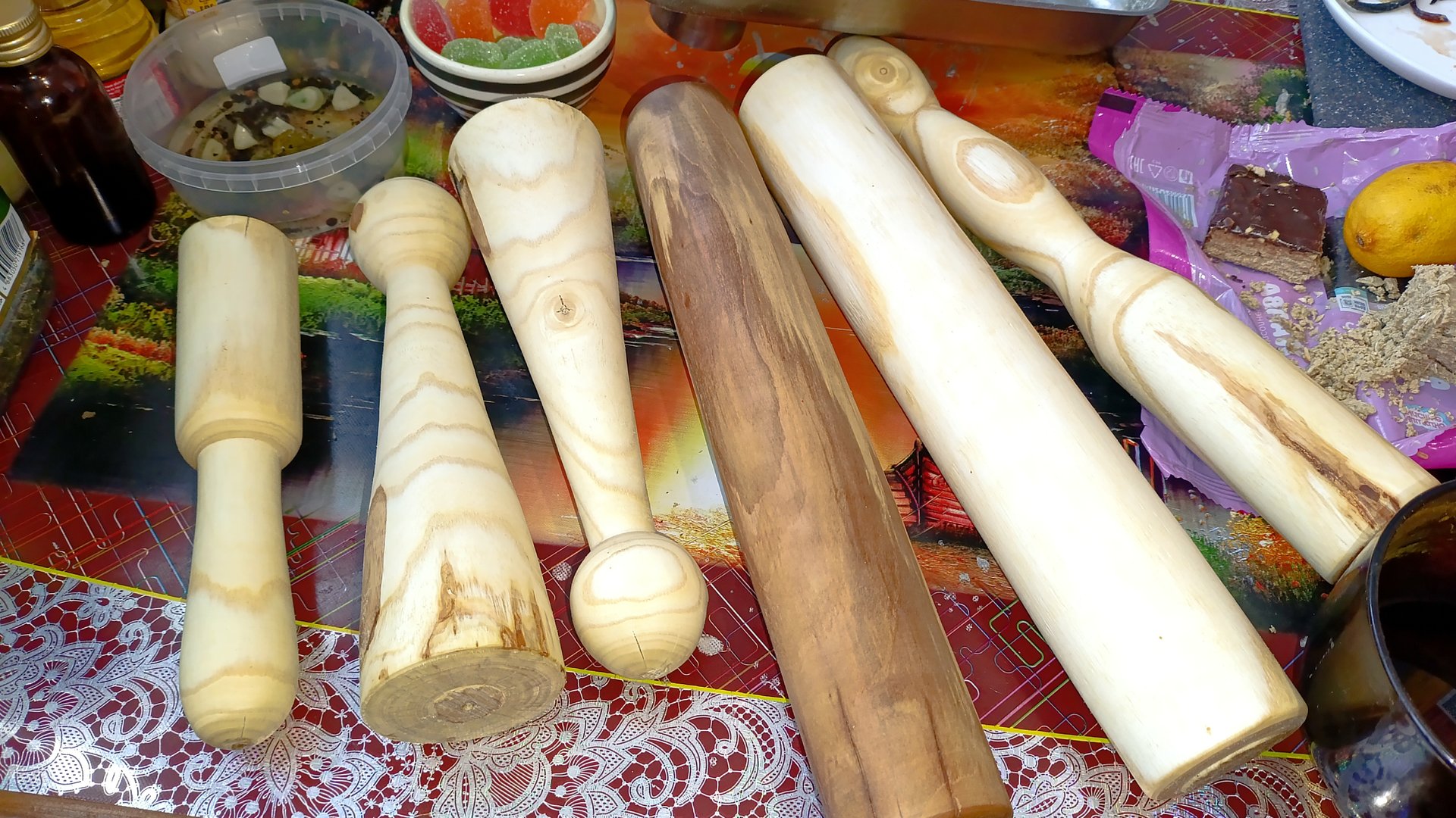 точение деревянной кухонной утвари. начинаются первые заказы. скалки, мялки, толкушки, толкалки и тд
