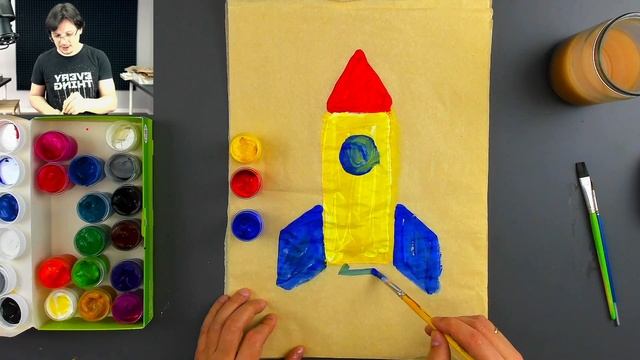 Рисуем РАКЕТУ красками для детей - детский сад