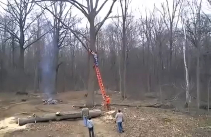 Решил спилить сучок, за что поплатился. #прикол #дерево