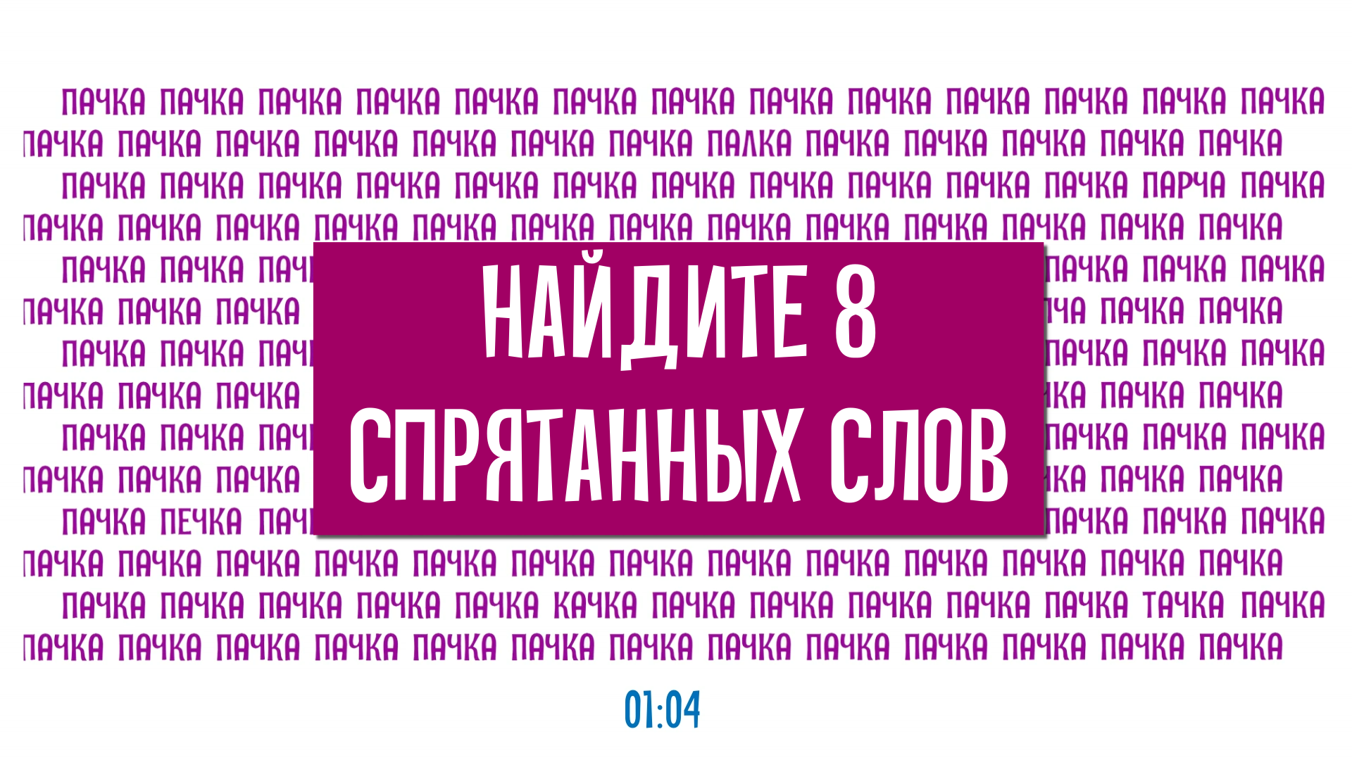 Тренируем усидчивость. Найдите 8 слов, которые отличаются от слова "ПАЧКА"