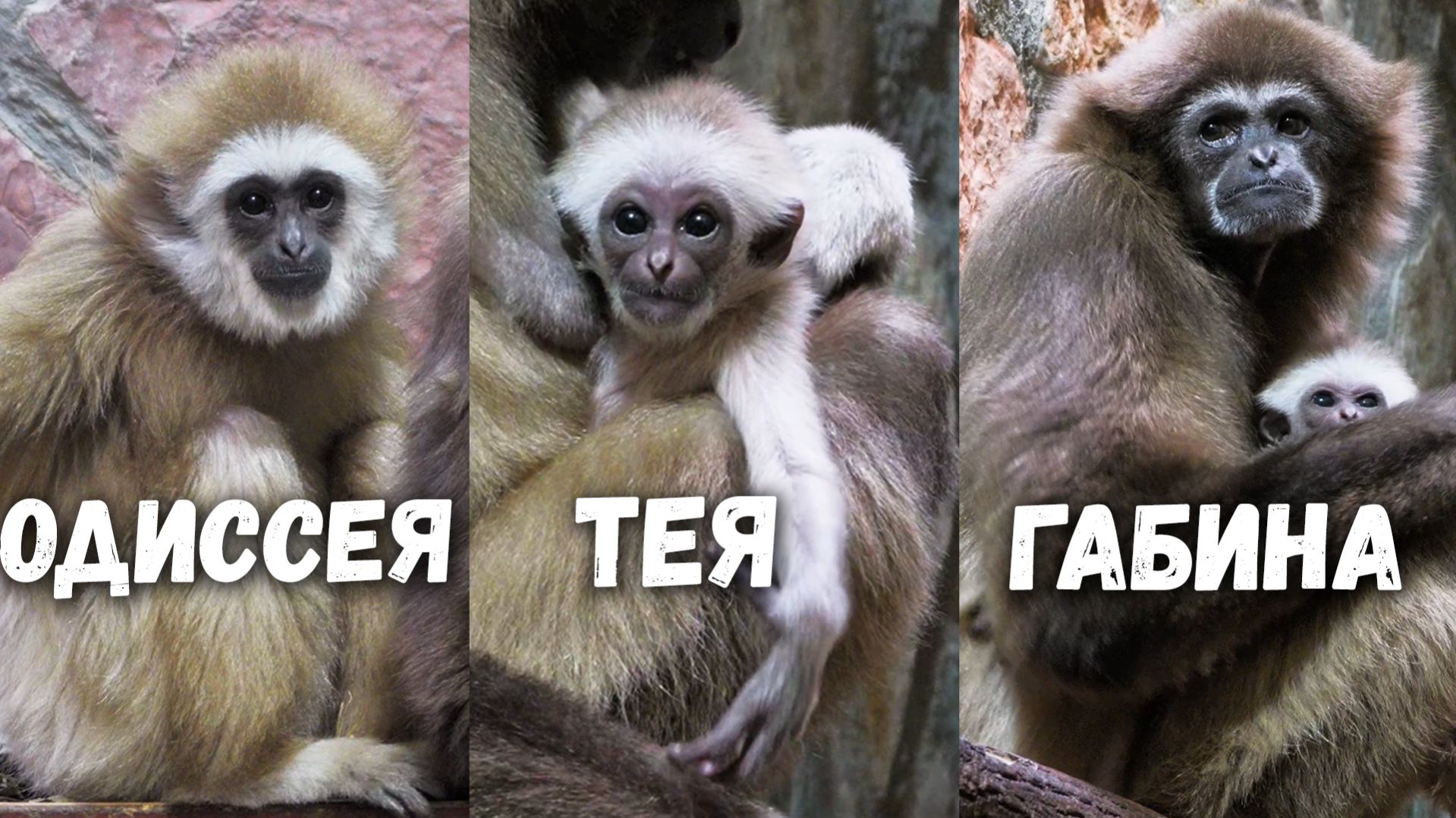 Семья белоруких гиббонов: Габина и ее дочки Одиссея и Тея. Ленинградский зоопарк