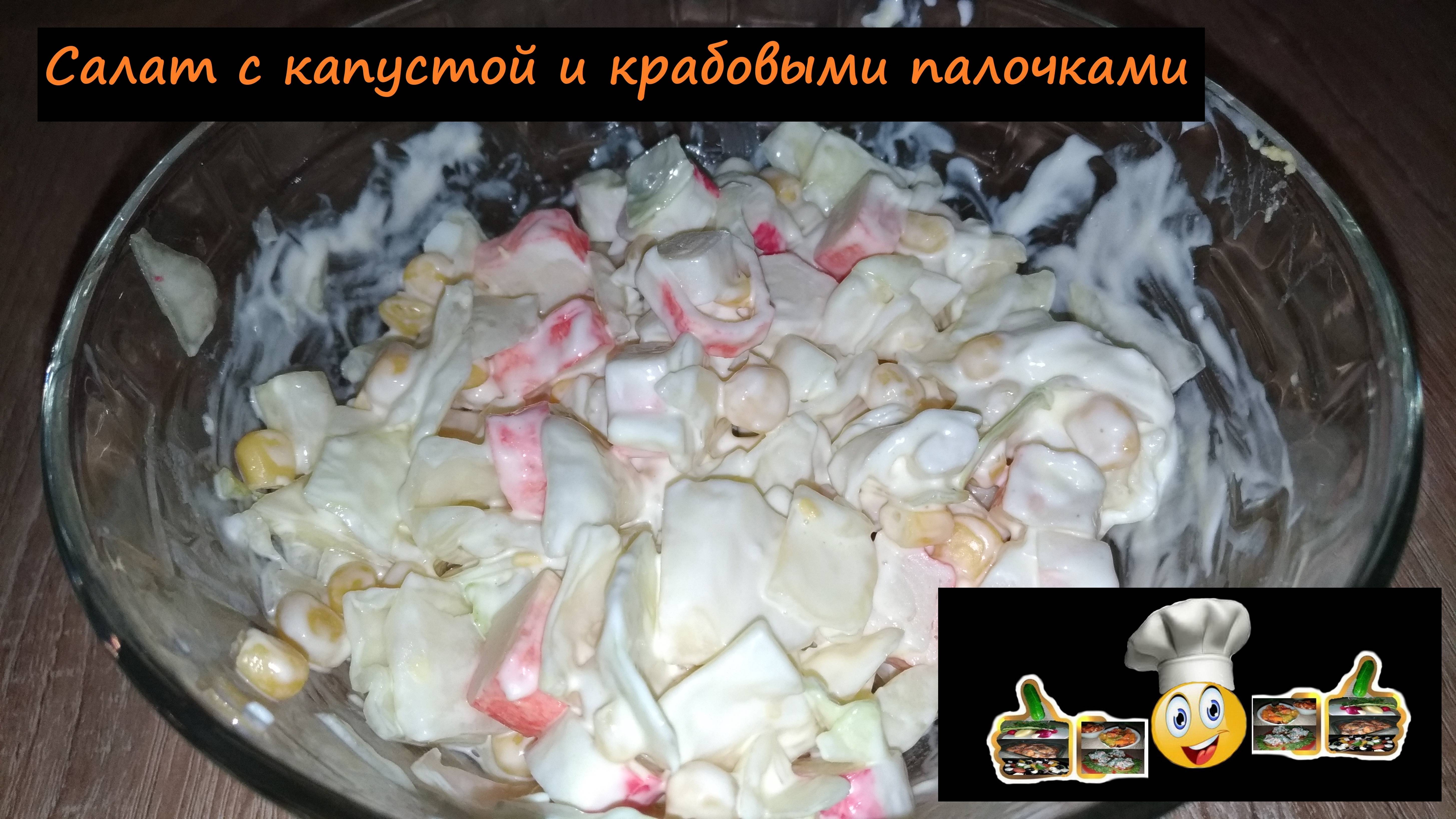 Салат с капустой и крабовыми палочками/Салаты/Рецепт № 214