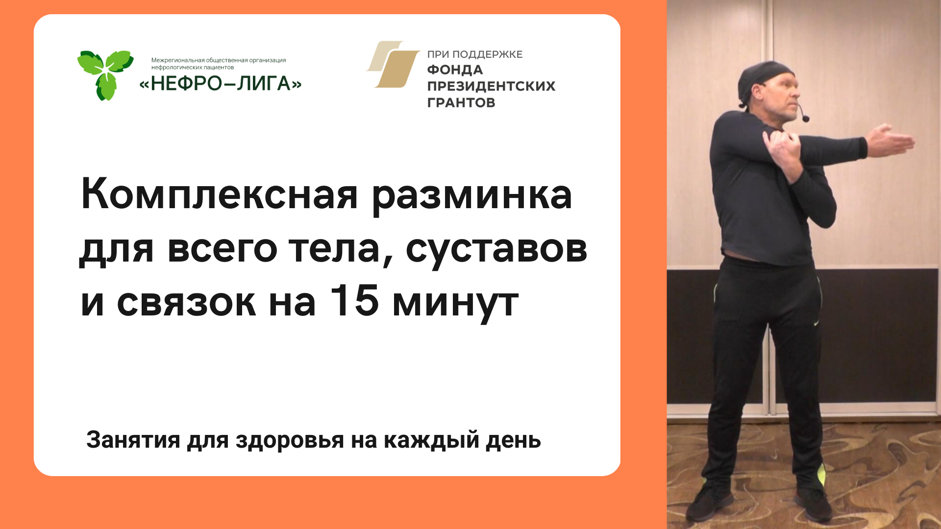 Лёгкая зарядка на всё тело, суставы и связки доступна для людей на диализе и после трансплантации органов. Польза физкультуры Тело среднестатистического человека практически не испытывает физических нагрузок, оно становится нетренированным и ослабленным. Надо заниматься спортом, физическими упражнениями, чтобы поддерживать тонус мышц, эластичность связок и подвижность суставов. Ежедневная гимнастика помогает оставаться позвоночнику здоровым и питает суставы, она укрепляет важные группы мышц, формирует мышечный корсет, предупреждает атрофию связок и является источником хорошего настроения. Во время тренировок мышцы разогреваются, в их клетках увеличивается метаболизм. Все эти процессы поддерживают здоровье человека и дарят годы активной жизни. Видео создано в рамках проекта «Трансплант Спорт. 2.0: К новым победам», поддержанного Фондом Президентских Грантов. Упражнения с резиновым эспандером. Часть 1 https://youtu.be/NSmmgoiARrs Упражнения с резиновым эспандером. Часть 2 https://youtu.be/y1Qk_MoW8Xk Нас можно найти: Сайт ‒ https://nephroliga.ru/ ------------------------------------------------------------------------------------------------- VK ‒ https://vk.com/nephroliga ------------------------------------------------------------------------------------------------- Telegram ‒ https://t.me/nephroliga ------------------------------------------------------------------------------------------------- Трансплантация? Я – за! ‒ https://donor4life.ru/ ------------------------------------------------------------------------------------------------- TransplantNet ‒ https://xn--80aa6ahcjekfi.net/info ------------------------------------------------------------------------------------------------- Яндекс Дзен ‒ https://zen.yandex.ru/id/610fe67aa9cf... ------------------------------------------------------------------------------------------------- VK ‒ https://vk.com/nefropravo ------------------------------------------------------------------------------------------------- #разминка #упражнения #тренировка #силоваятренировка #тренировка_дома #зарядка #нефрология #трансплантация #гемодиализ